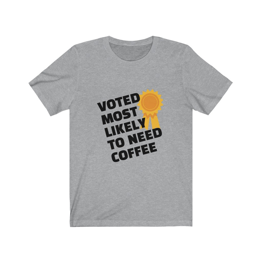 Coffee is great, and some of us need more than others! This classic unisex jersey short sleeve tee is made of  100% Airlume combed and ringspun cotton. Comes in black, white, athletic heather, heather navy, and red. Runs true to size